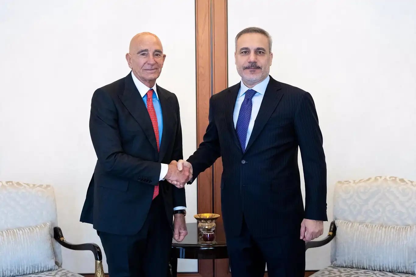 اجتمع وزير الخارجية التركي، حكّان فيدان، اليوم بأنقرة مع السفير الأمريكي لدى تركيا والمبعوث الخاص لسوريا، توم باراك. أكدت مصادر دبلوماسية هالاجتماع اللي صار يوم التلاتا، بس ما نزل أي تصريح مفصل عن المواضيع اللي انبحثت فيه، الأمر اللي ترك كتير من التساؤلات عن طبيعة النقاشات اللي دارت بين الطرفين. هاللقاء بيجي ضمن سلسلة من التحركات الدبلوماسية المستمرة بين أنقرة وواشنطن، خصوصاً مع الدور اللي بيلعبو السفير باراك كمبعوث خاص لسوريا، واللي بيعطي أهمية خاصة لأي مباحثات ممكن تتناول الملف السوري المعقد.