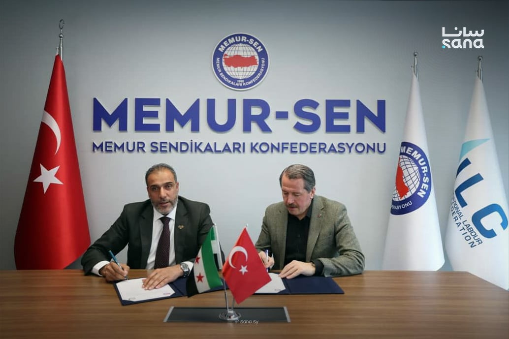 وقع الاتحاد العام لنقابات العمال بسوريا واتحاد نقابات موظفي الخدمة المدنية بتركيا (Memur-Sen) اتفاقية تعاون رسمية بالعاصمة التركية أنقرة. هالخطوة بتيجي لتقوي العلاقات النقابية وتدعم تبادل الخبرات بين البلدين، وتعتبر أساس لشراكة طويلة الأمد بتخدم مصالح العمال بالجمهوريتين.