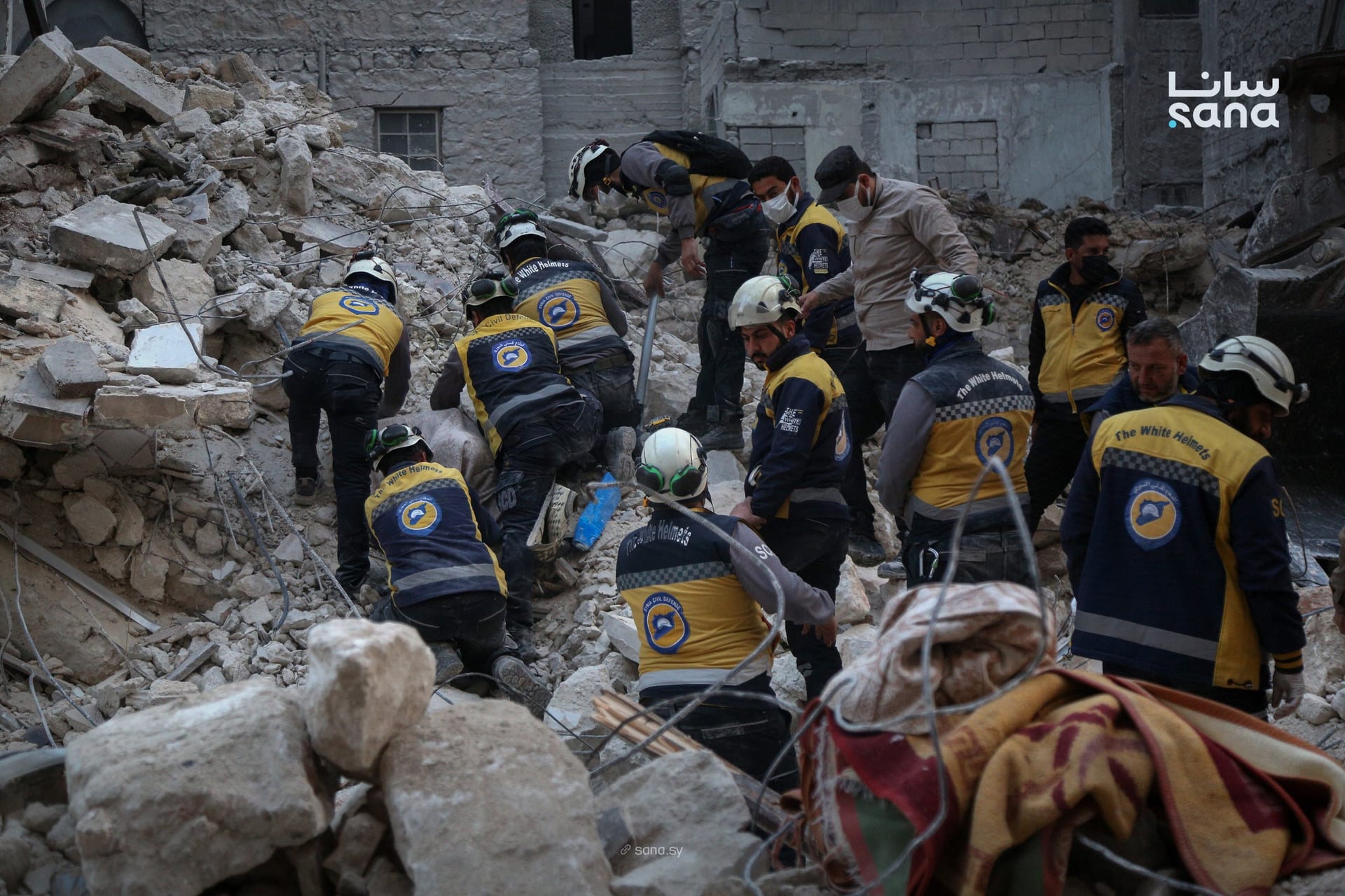 انتشلت فرق الدفاع المدني السوري جثتين، رجل وامرأة، من تحت أنقاض بناية سكنية مؤلفة من خمس طوابق انهارت يوم الجمعة بحي الأشرفية بمدينة حلب. فرق البحث عم تكمل شغلها بكل جهد مشان توصل لباقي العالم اللي لسا يعتقد إنو محاصرة تحت الركام والحديد. التقديرات الأولية اللي صدرت من المكان بتشير إلى إنو في حوالي عشر أشخاص لسا تحت الأنقاض، ومن بيناتن عيلة كاملة مكونة من سبع أفراد، وهالشي عم بيخلي جهود الإنقاذ تركز على تحديد أماكنهم والوصول إلهن بأسرع وقت ممكن.