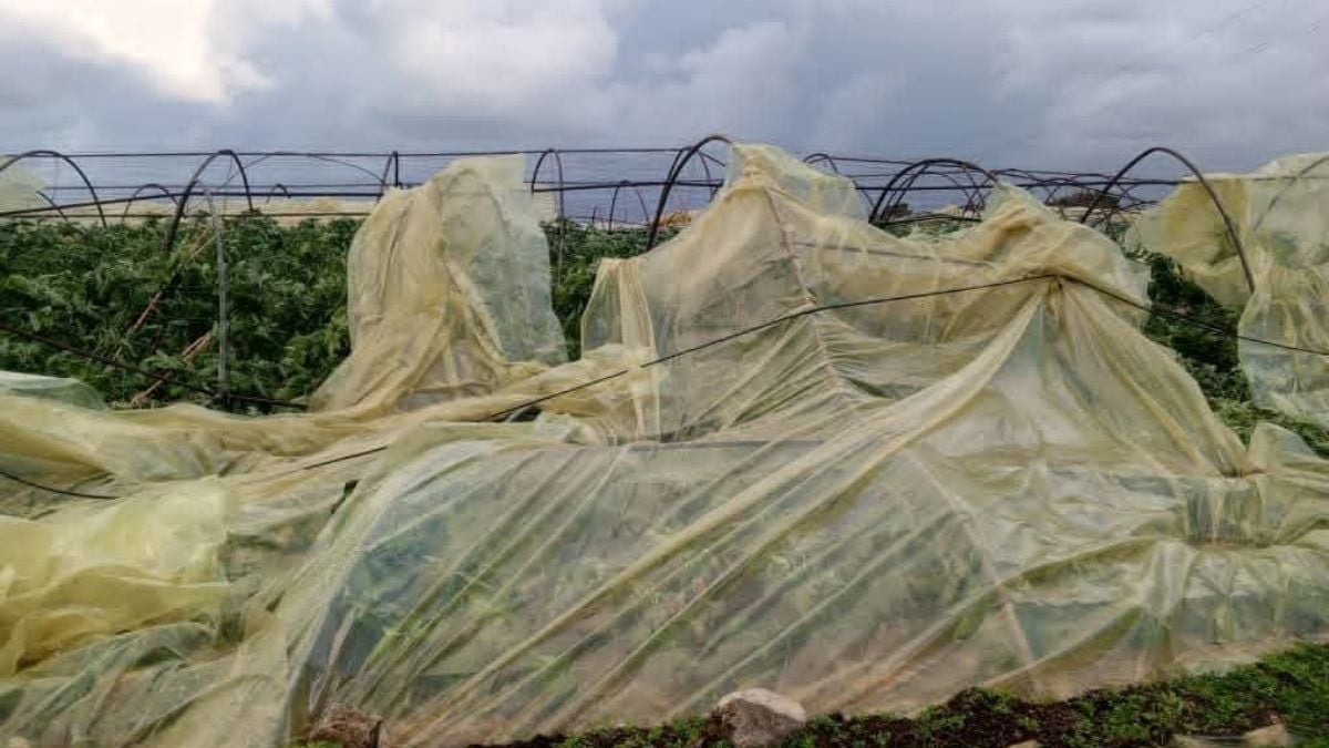 المزارعين حكوا إنو أغلب الأنفاق المتضررة كانت مزروعة بندورة وباذنجان، والأضرار شملت النايلون والهيكل الحديدي مع المحاصيل. بس الحمد لله ما صار إصابات بشرية.
