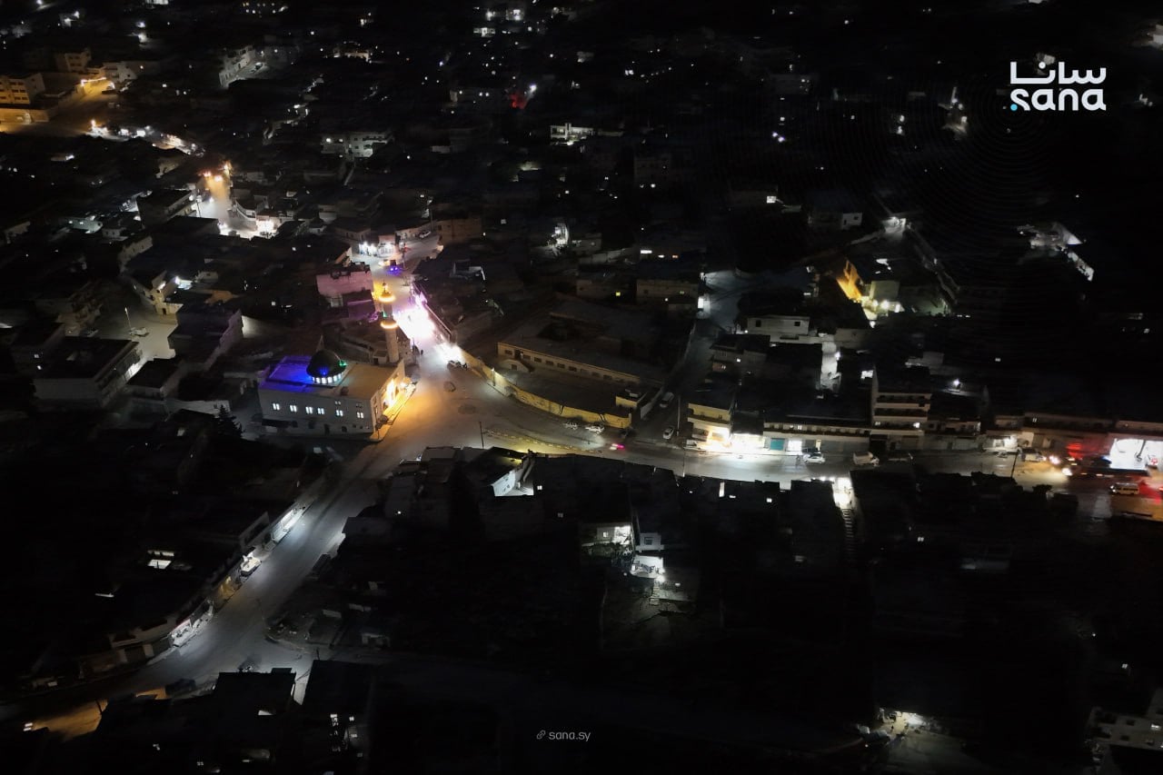 انتشرت لقطات جوية ليلية بتورجي مدينة دارة عزة بريف حلب الغربي، وهالصور خلت الناس تشوف المدينة بطريقة مختلفة وساحرة. هاللقطات، يلي اتصوّرت من فوق، بتعطينا لمحة عن جمال دارة عزة وهدوئها بالليل، وكأنها لوحة فنية مرسومة بالضو والعتمة.