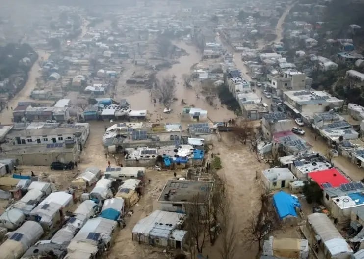 محافظة إدلب شهدت أمطار غزيرة كتير، وهاد الشي أدى لتشكل سيول قوية جرفت عدد كبير من المخيمات القريبة من مجاري المي الموسمية بخربة الجوز. وهاد الشي استدعى إنو يعملوا عمليات إجلاء سريعة للعائلات، وفتحوا مدارس ومراكز إيواء لحتى يستقبلوا العائلات اللي تضررت بيوتها أو مخيماتها.