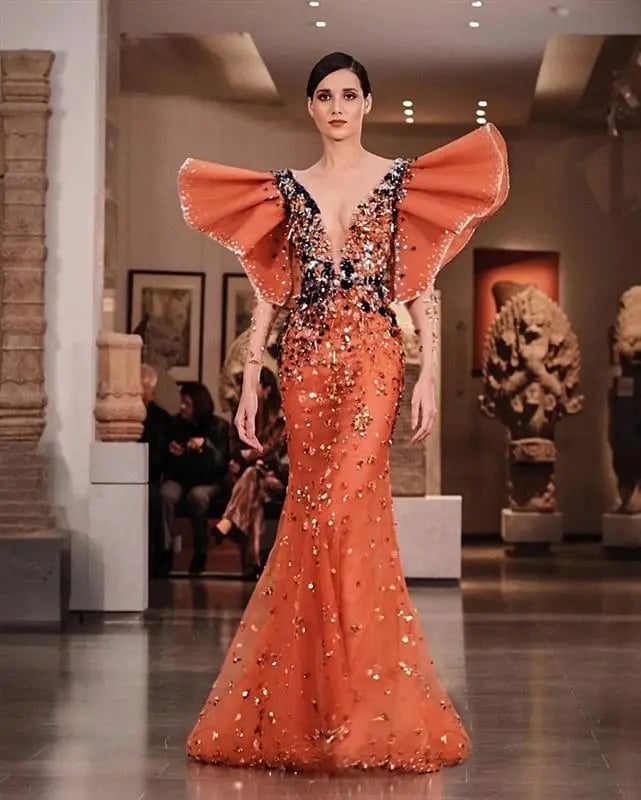 المجموعة تميزت بأقمشة كتير ناعمة وتطريزات يدوية دقيقة، ولوحة الألوان كانت بتنتقل من الدرجات الغامقة للمضيئة، بهالطريقة خلقت مسار بصري متكامل، وانتهى العرض بفستان أبيض كان بيحمل دلالة رمزية على البدايات الجديدة.