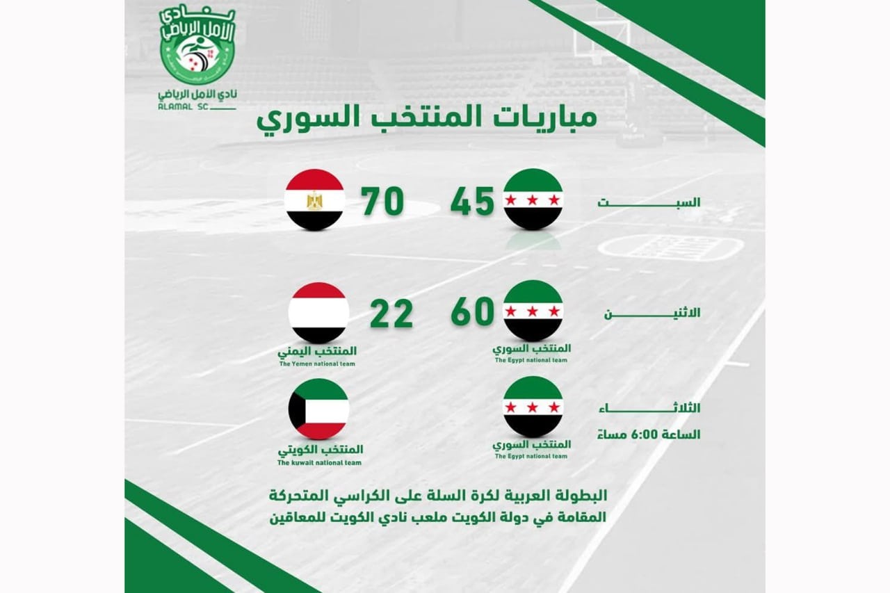 حقق المنتخب السوري البارالمبي لكرة السلة على الكراسي المتحركة فوزاً مهماً على المنتخب اليمني، بنتيجة 60 نقطة مقابل 22 نقطة، ضمن منافسات البطولة العربية اللي عم تستضيفها الكويت حالياً. هاد الفوز بيعتبر إنجاز جيد للمنتخب السوري، خصوصاً إنو اجا بالمباراة التانية إلو بالبطولة.