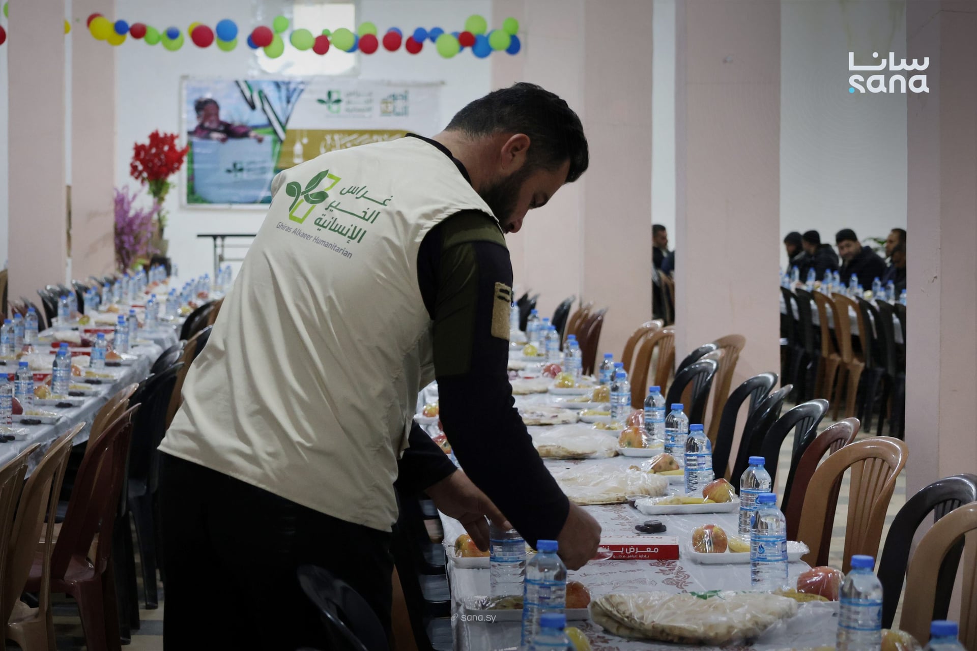 نظّمت جمعية غراس الخير الإنسانية، بالتعاون مع نقابة المعلمين بإدلب، إفطار جماعي كبير لأكتر من 350 معلّم ومعلّمة، وكمان للمتقاعدين، وللناس اللي انصابوا خلال الثورة السورية. هالإفطار صار بقرية قاح، اللي موجودة بريف إدلب الشمالي.