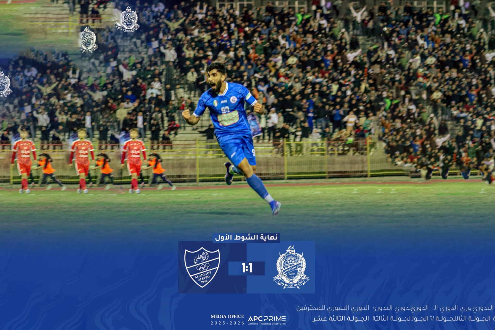 الجولة رقم اتناشر (12) بتنتهي بكرة الأربعاء بلقاءين مهمين. المباراة الأولى بتجمع الكرامة مع خان شيخون بملعب الجلاء بدمشق، والمباراة التانية رح تكون بين الوحدة والشرطة بملعب الفيحاء بدمشق.