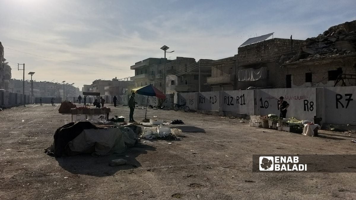 عنب بلدي شافت السوق، وكان فاضي من البياعين والمشترين، إلا من تلات بسطات بس، مع إنه المفروض يضم عشرات البياعين. حسين، واحد من هالبياعين التلاتة اللي قابلتهن عنب بلدي جوات السوق، قال إنه بالأكتر في تمن بسطات، وبعدين الكل بيمشي قبل الضهر ليرجعوا ينتشروا بالشوارع الرئيسية، خصوصاً عند دوار الحلوينية. حسين برر هالشي بقلة إقبال الناس، وبدهن يبيعوا بضاعتهن أسرع مشان ما تخرب.