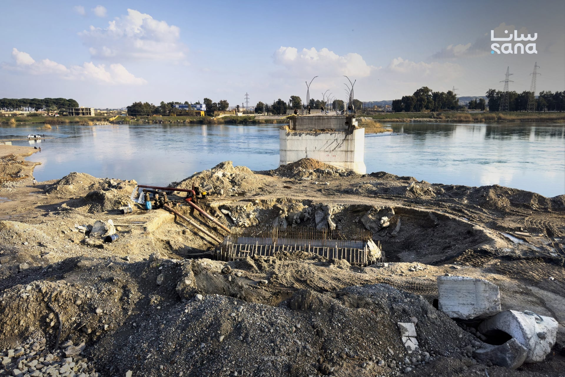 ورشات المؤسسة السورية للبناء والتشييد خلصت صب قاعدة الركيزة المتضررة بجسر الرشيد بمدينة الرقة، وهاد الشي بيجي ضمن مراحل مشروع إعادة تأهيل الجسر.