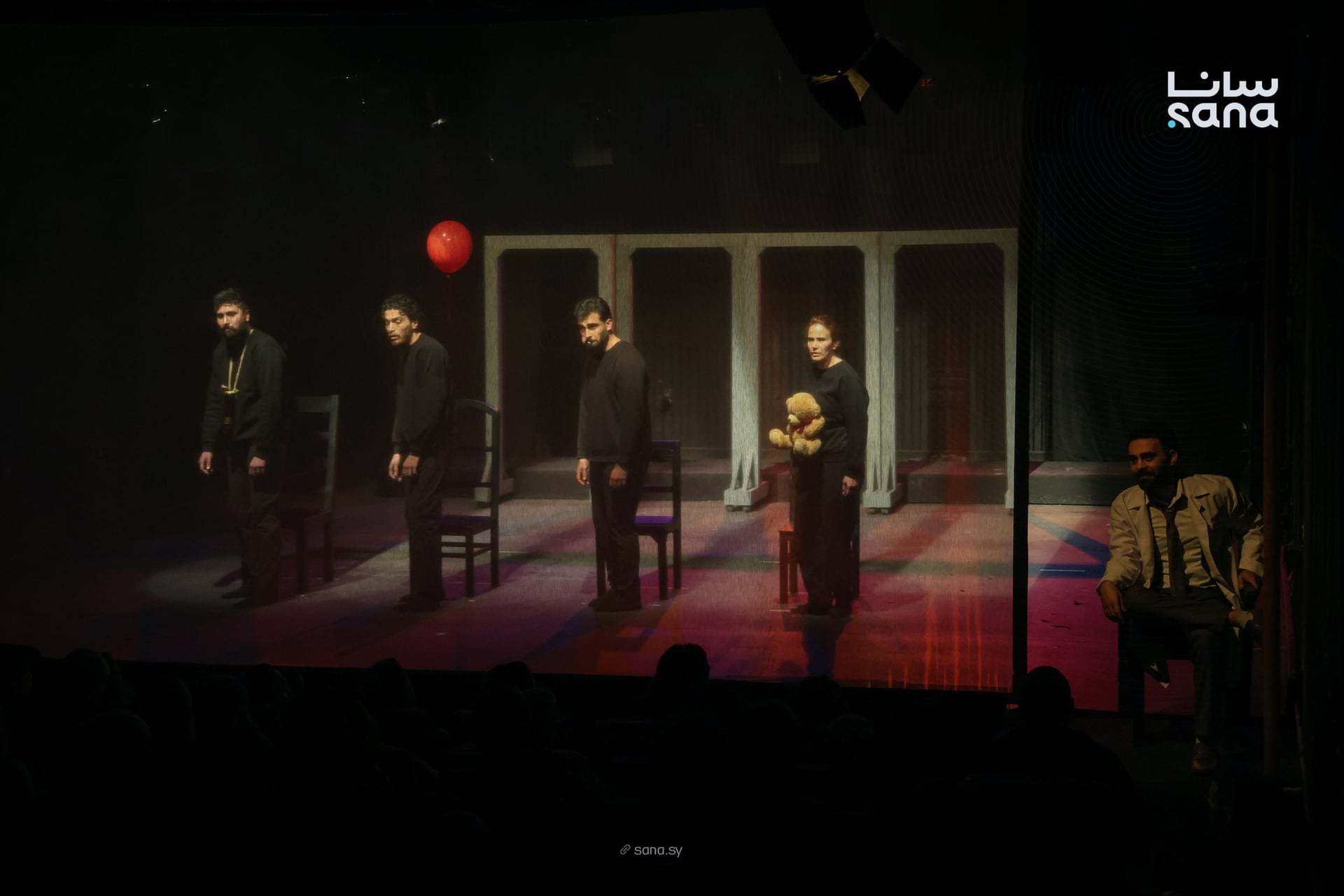أما العرض المسرحي “اليوم السابع”، اللي كتبه وأخرجه كفاح الخوص، فكان تجربة بصرية وفكرية اعتمدت على تقنيات ثلاثية الأبعاد. هالعرض غاص بعوالم نفسية وفلسفية معقدة، وبتدور أحداثه بمختبر سري بيديره شخص غامض اسمو الدكتور “إكس”. بهالمختبر، أربع شخصيات مهمشة بتخضع لاختبارات نفسية قاسية، بتكشف كيف بيتغير سلوك الإنسان تحت الضغط.